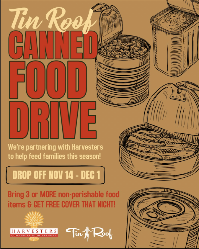 We're partnering with Harvesters to help feed families this holiday season! Drop off canned goods anytime during business hours between November 14th and December 1st! Bring 3 or MORE non-perishable food items and receive FREE COVER THAT NIGHT!